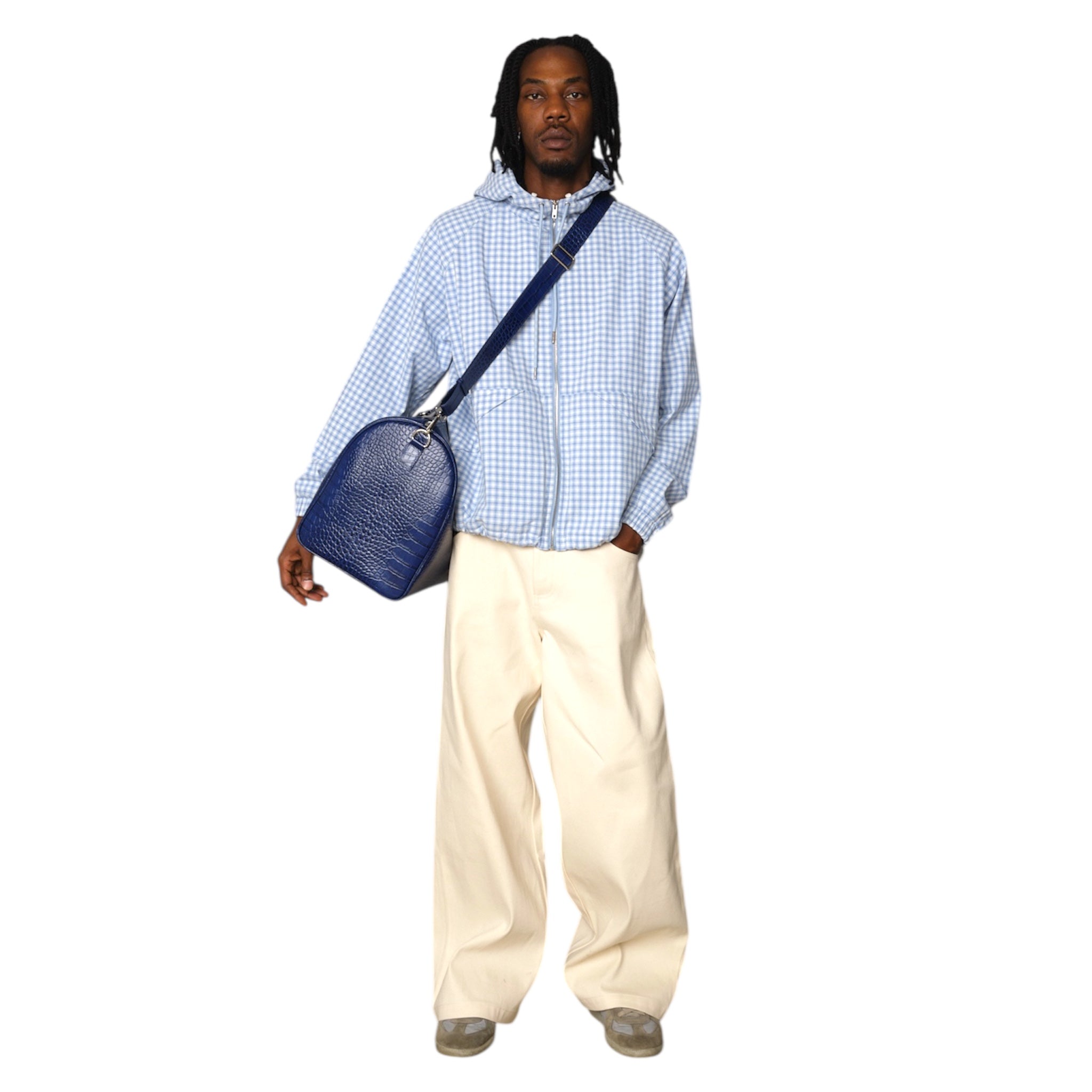 EACH JACKET IS CUT FROM A CUSTOM-WOVEN COTTON PLAID SHELL, DEVELOPED TO ACHIEVE A LIGHTWEIGHT FEEL. THE FABRIC BREATHES LIKE A CLASSIC SUMMER WEAVE BUT HOLDS ITS SHAPE LIKE A TECH SHELL, MAKING IT AN ALL-SEASON LAYER. FULLY LINED WITH A SOFT-DYED BLUE COTTON INTERIOR. ENGINEERED WITH PANEL CONSTRUCTION THROUGH THE SHOULDERS AND 3 PANEL HOOD FOR BETTER MOBILITY, EVERY SEAM IS REINFORCED, EVERY PANEL PATTERN-MATCHED, AND EVERY DETAIL — FROM THE ZIPPER TAPE TO THE BINDING — IS CHOSEN FOR LONG-LASTING PERFORMANCE. BUILT TO BREAK IN BEAUTIFULLY AND BE WORN YEAR-ROUND.