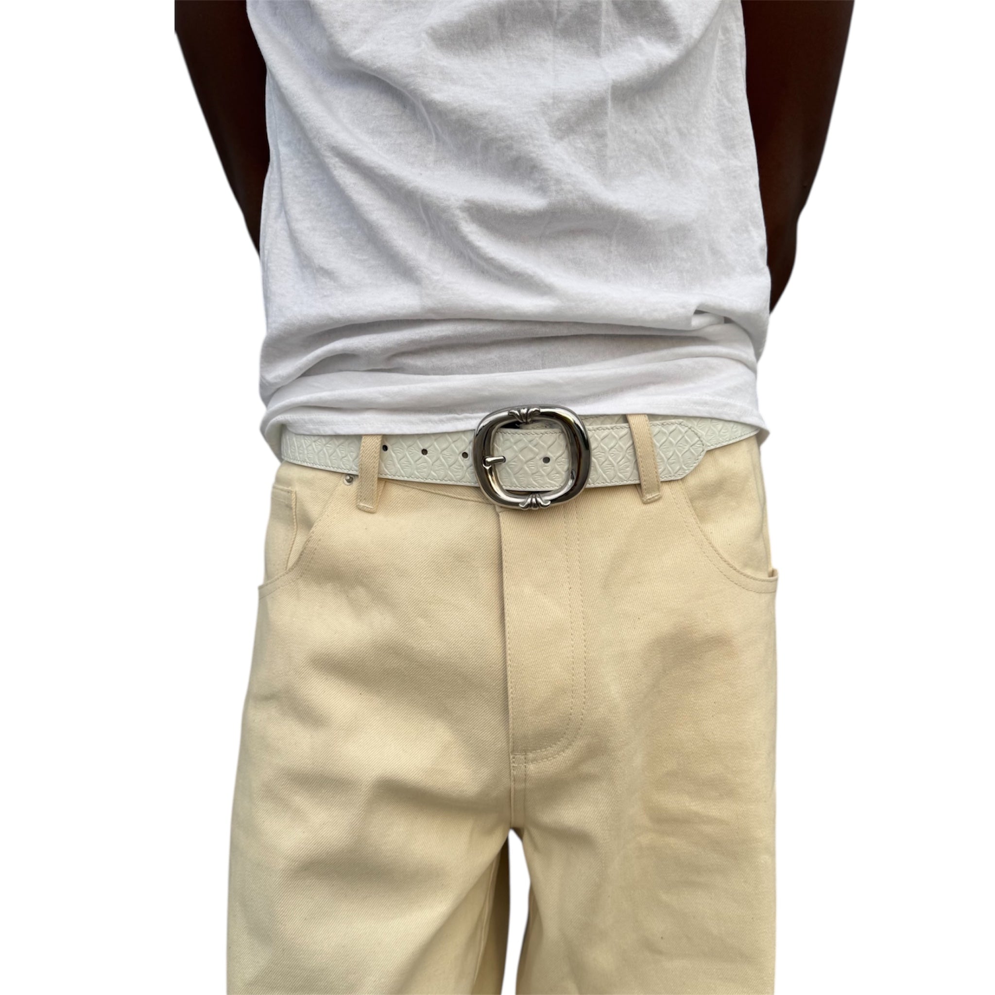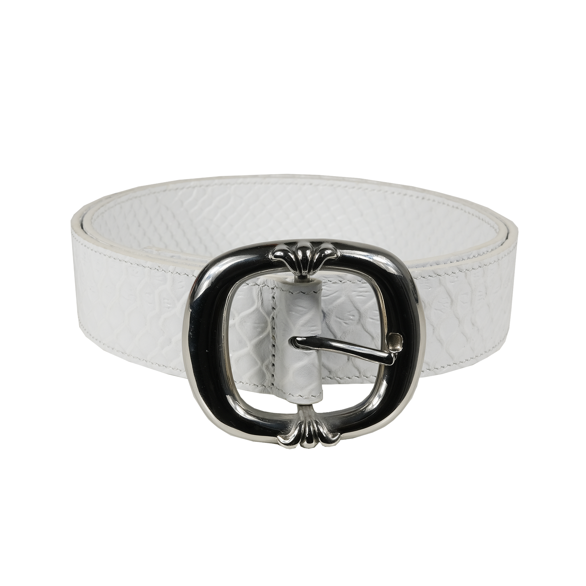 100% Genuine Embossed White Snakeskin leather belt with leather lining, Stainless Steel buckle.