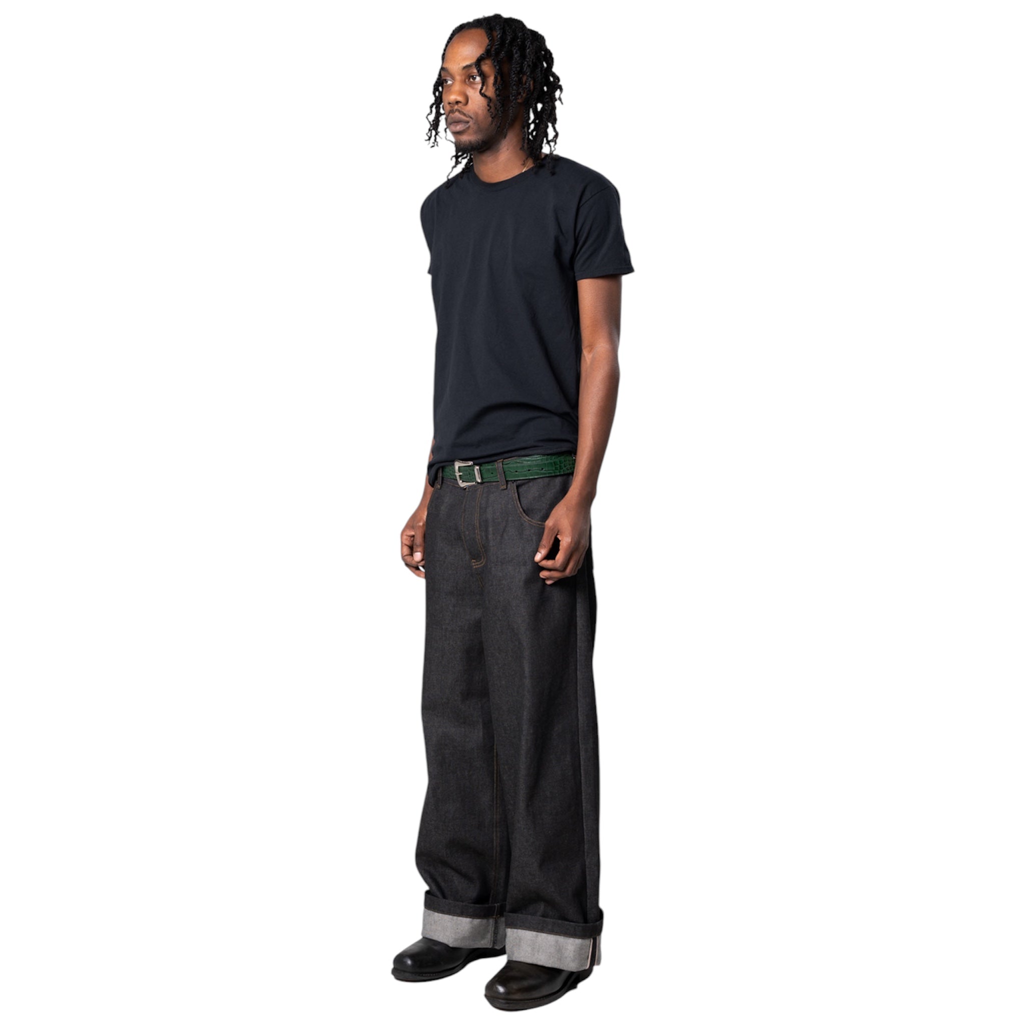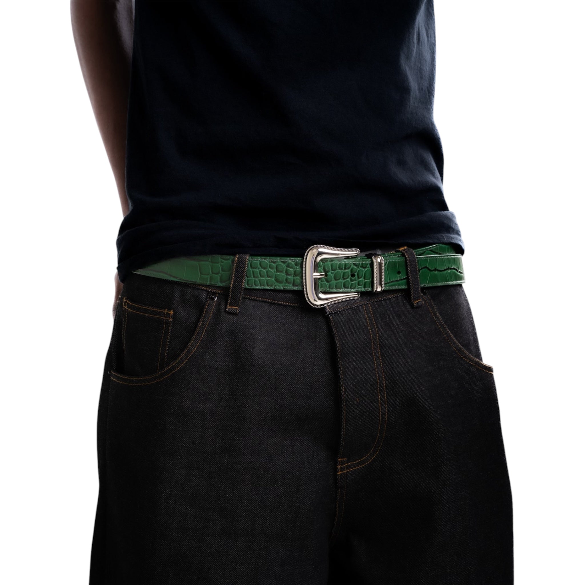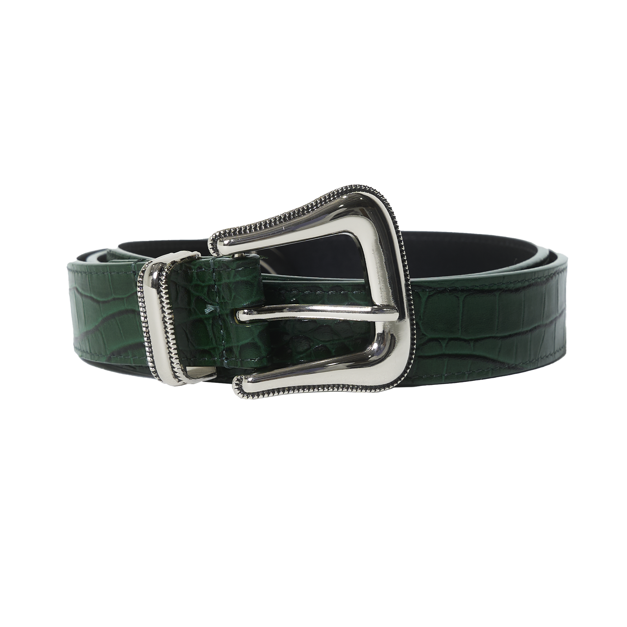 100% Genuine Embossed Crocodile Leather Belt With Leather Lining, Metal Buckle, Loop & End Tip. Monogram "A" Circle Logo Embossed On The Inside.